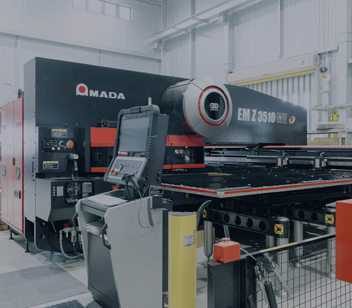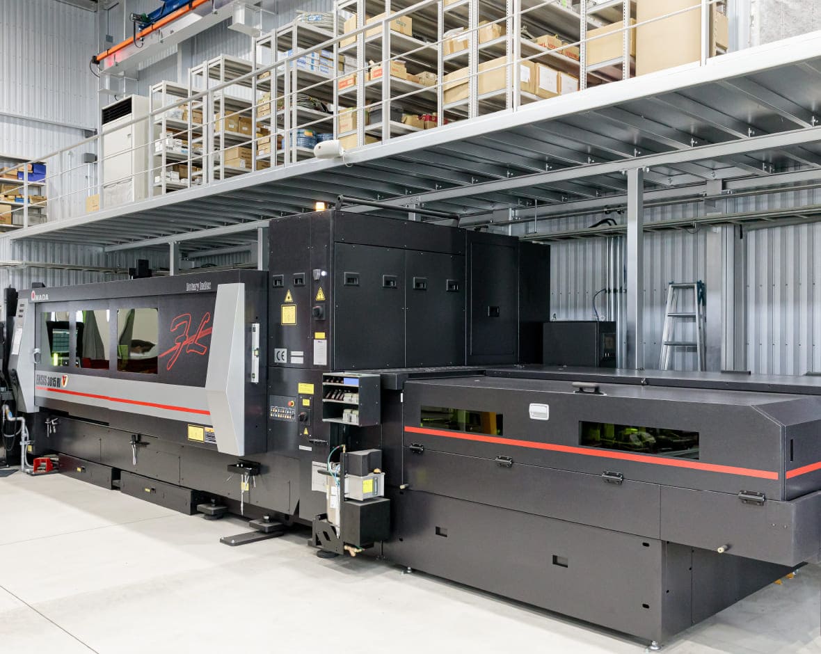 定評のある設計力、組立・配線に加え、ファイバーレーザーマシンAMADA ENSIS-3015-RIを導入したことにより、従来外注していたレーザー加工をより高度に行うことが可能です。