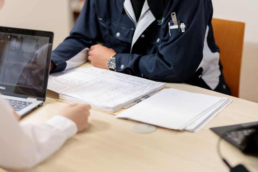 打ち合わせから約1週間程を目途に御見積書をご確認いただきます。お聞きした内容を元に、最適な部品の選定をさせていただいております。
